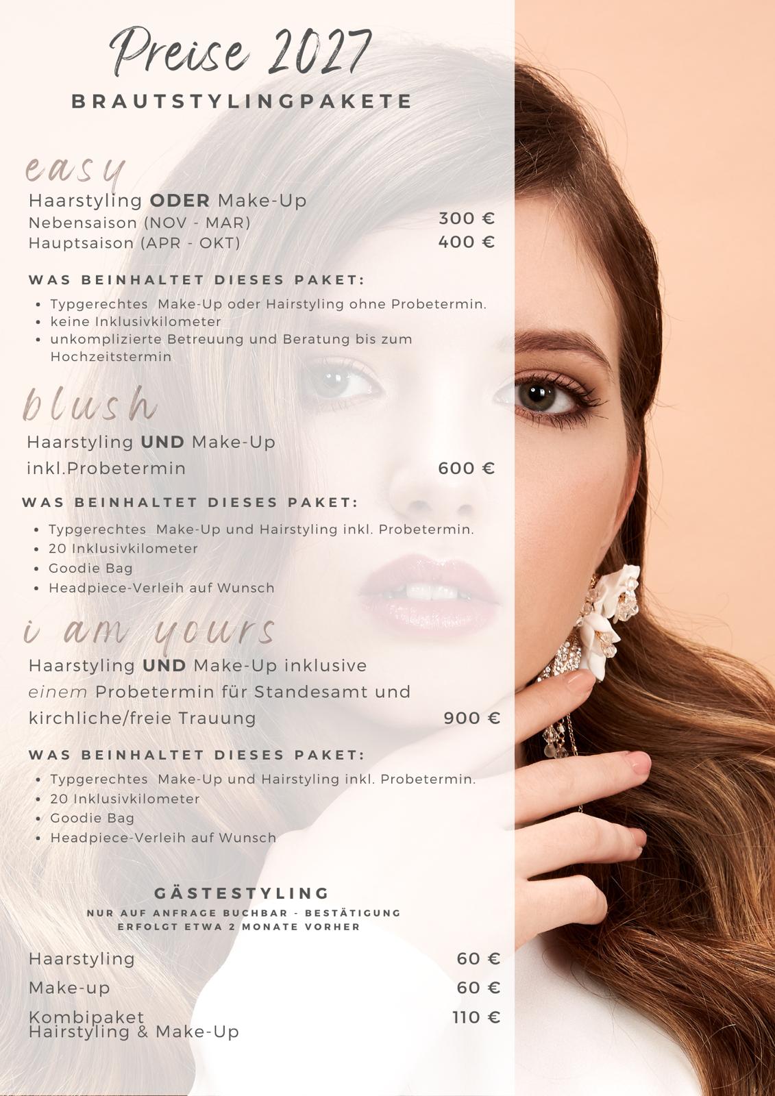 Frisur und Make-up perfekt aufeinander abgestimmt – mit persönlichem Probetermin 6–8 Wochen vor der Hochzeit.